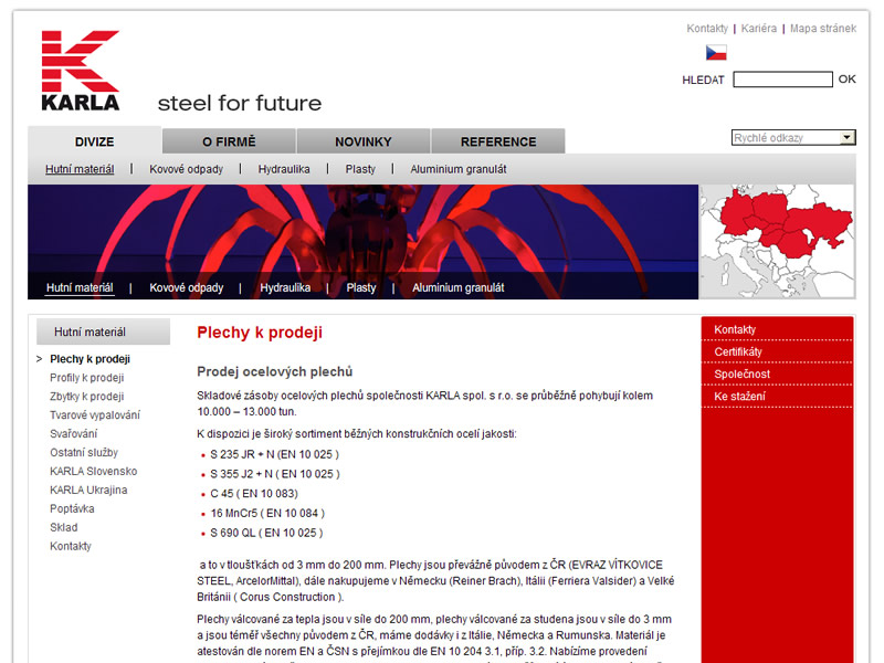 KARLA spol. s r.o. je významným dodavatelem hutního materiálu s působností po celé evropě. S rozvojem společnosti bylo zapotřebí rozšířit a zmodernizovat jak vzhled, tak funkčnost jejich internetových stránek.